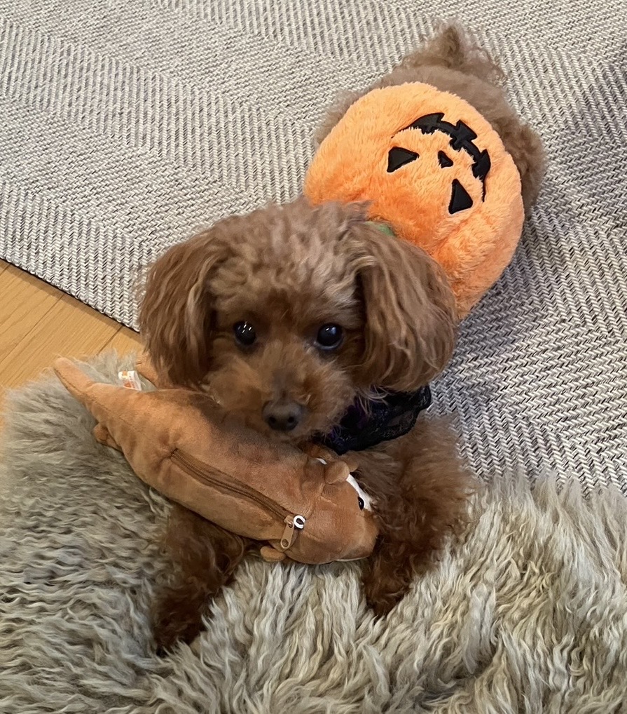 初めてトリミングに出して、綺麗になって帰って来た姿を見て、とても嬉しくて笑顔になりました。
